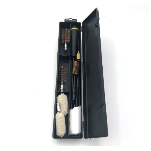 Набір для чищення рушниці включає: 3 сталеві стрижні, 1 перехідник для рушниці, 1 пластикову рукоятку, 1 упаковку пластирів, 2 щітки з отворами, 2 бавовняні швабри, 1 тримач латок.